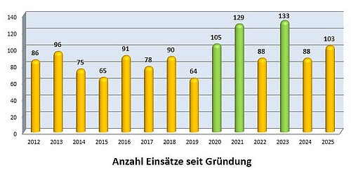 Einsatzstatistik 05.01.2026 Für alle die sich für Statistiken interessieren. Anzahl und Art der Einsätze seit der Gründung am 01.01.2012 Zurück zur Übersicht