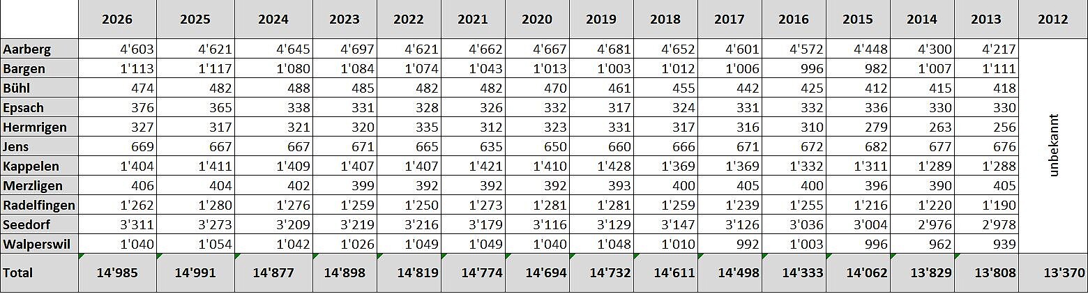 Per dem selben Datum wurden jegliche Feuerwehr Aufgaben an die Regio Feuerwehr Aarberg delegiert. Das Gebiet erstreckt sich über eine Fläche von 86,1 km2, in diesem Gebiet sind per 1. Januar 2023 14'877 Personen wohnhaft.